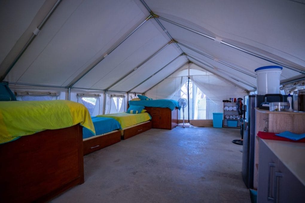 Matambú features six single beds, perfect for large groups or families seeking a unique lodging experience in Costa Rica. Additionally, the tent is equipped with a full kitchen, ideal for preparing delicious meals, an outdoor bathroom for an authentic connection with nature, and a terrace where you can enjoy breathtaking views.